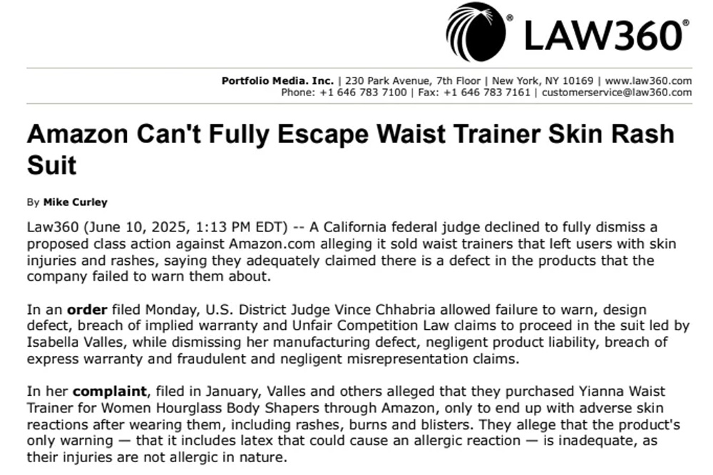 Amazon Can’t Fully Escape Waist Trainer Skin Rash Suit